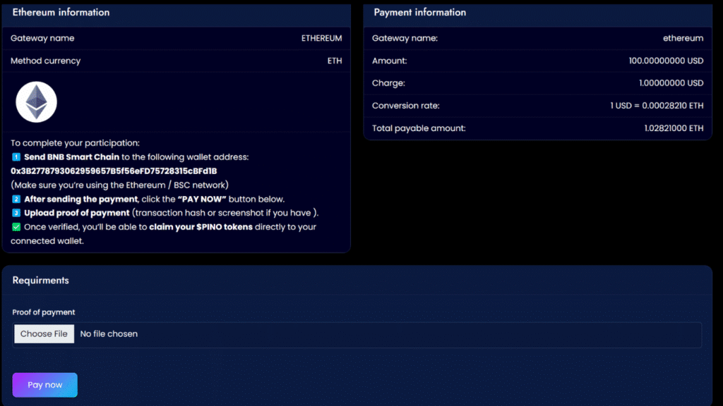 If available, upload your payment receipt to speed up verification. Once confirmed, your tokens will be allocated to your account.